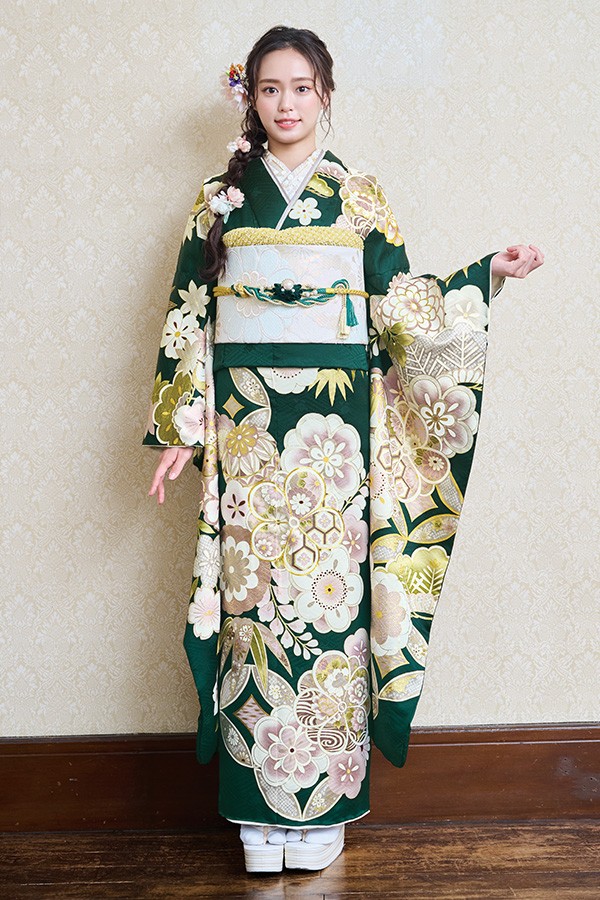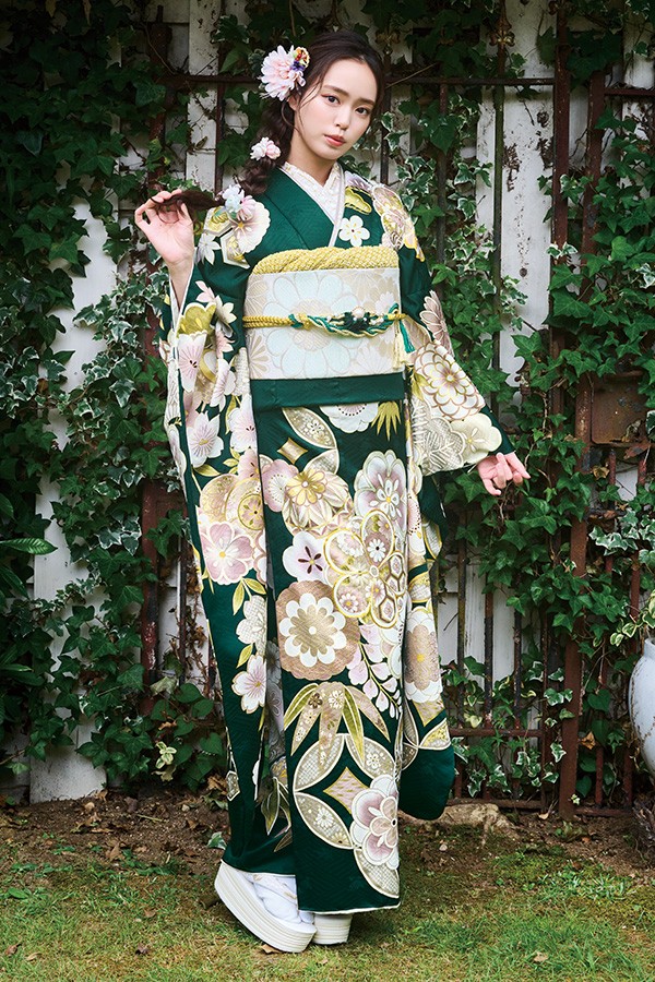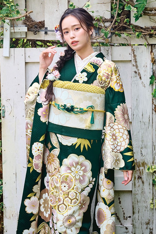グリーンで差がつく、凛としたお振袖。H-814